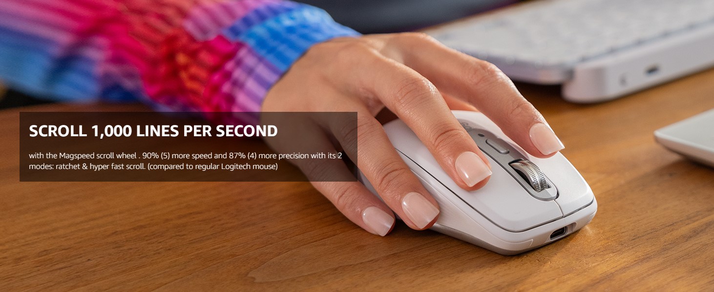 • Scroll 1000 Lines Per Second: With MagSpeed, Logitech’s fastest and most precise scroll wheel