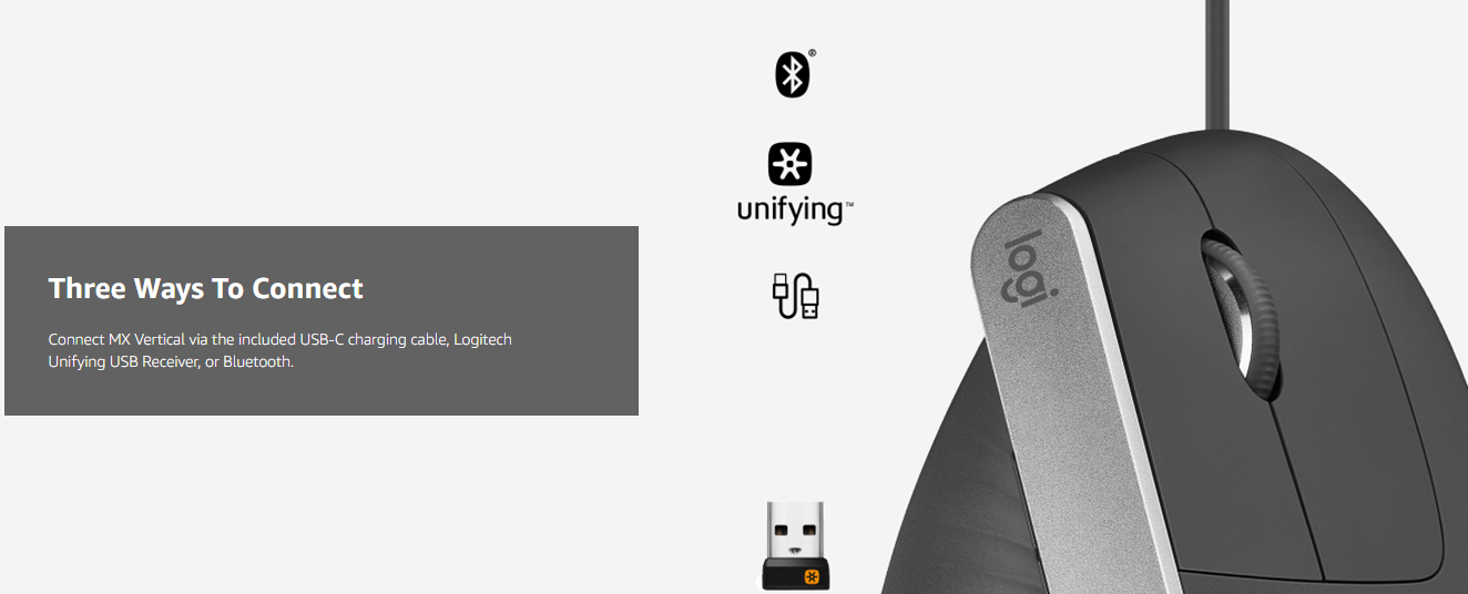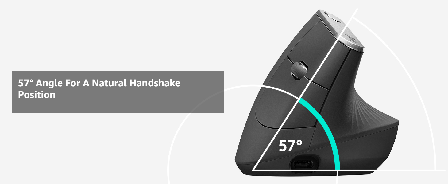 • Natural handshake position : The Logitech MX Vertical's natural handshake position helps reduce muscular activity by 10 percent compared to a standard computer mouse - without any loss in overall performance