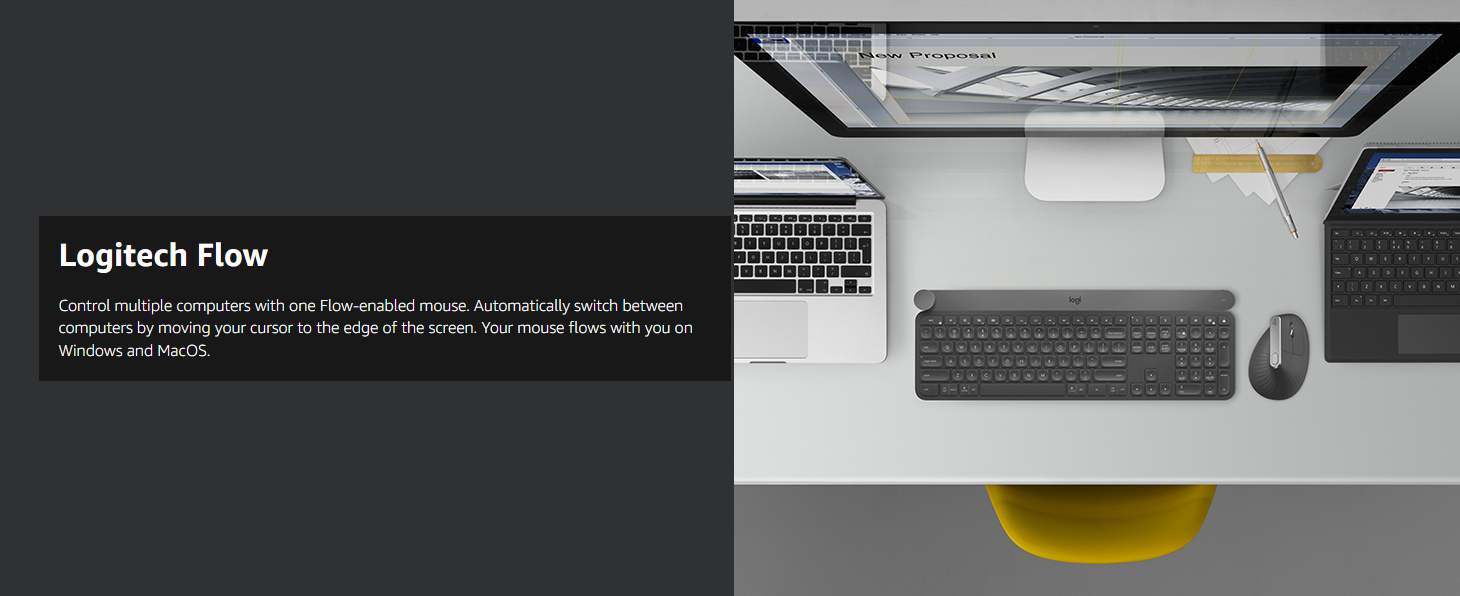 • Easy-Switch and Flow-enabled : Connect to up to three Windows PCs, Macs, laptops and switch between them at the tap of a button or by simply moving the cursor from one screen to another with Logitech FLOW (Requires Logitech Options software)