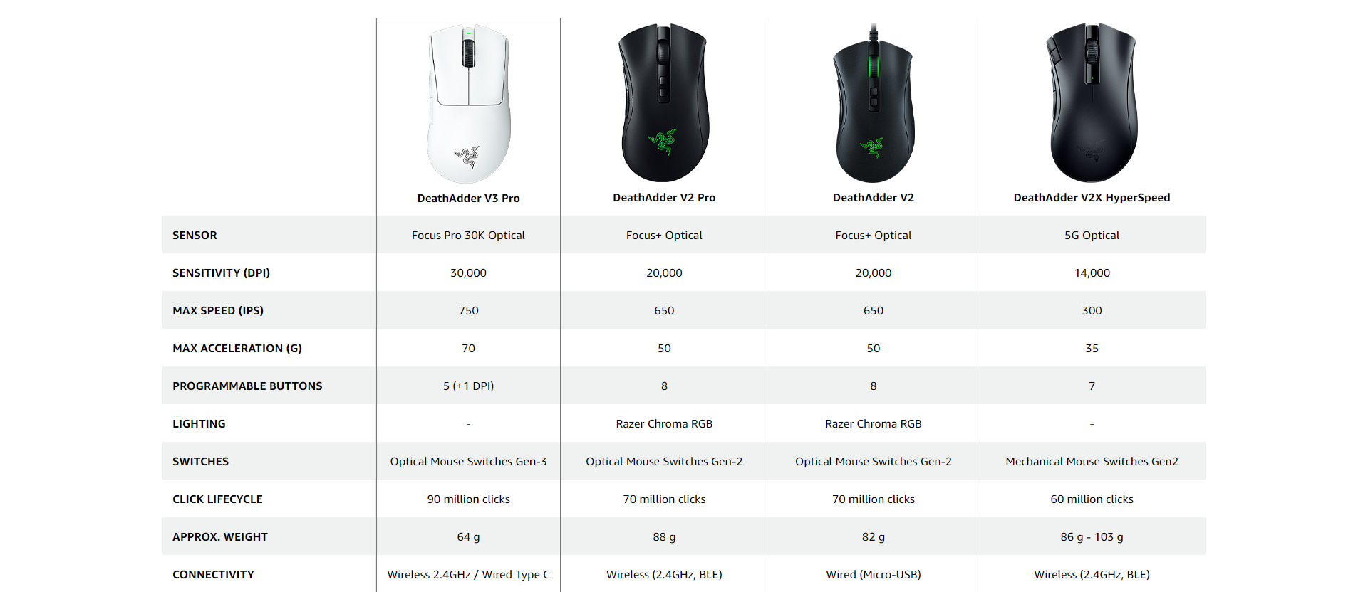 - Razer Focus Pro 30K Optical Sensor Best-in-class precision: Razer’s brand-new sensor provides flawless tracking performance on a wider variety of surfaces including glass—supported by intelligent functions for enhanced aim and control