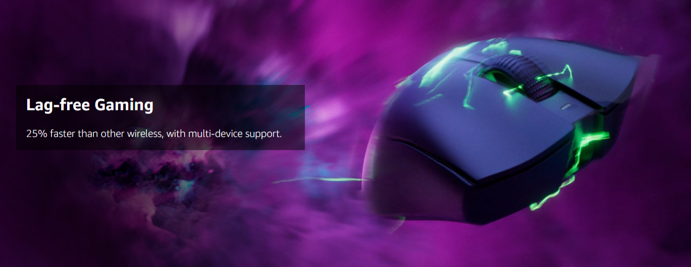 - Razer HyperSpeed Wireless 25% faster than other wireless: With a connection 25% faster than any other wireless tech available, enjoy high-performance, low-latency competitive play that remains smooth and stable even in noisy wireless environments.