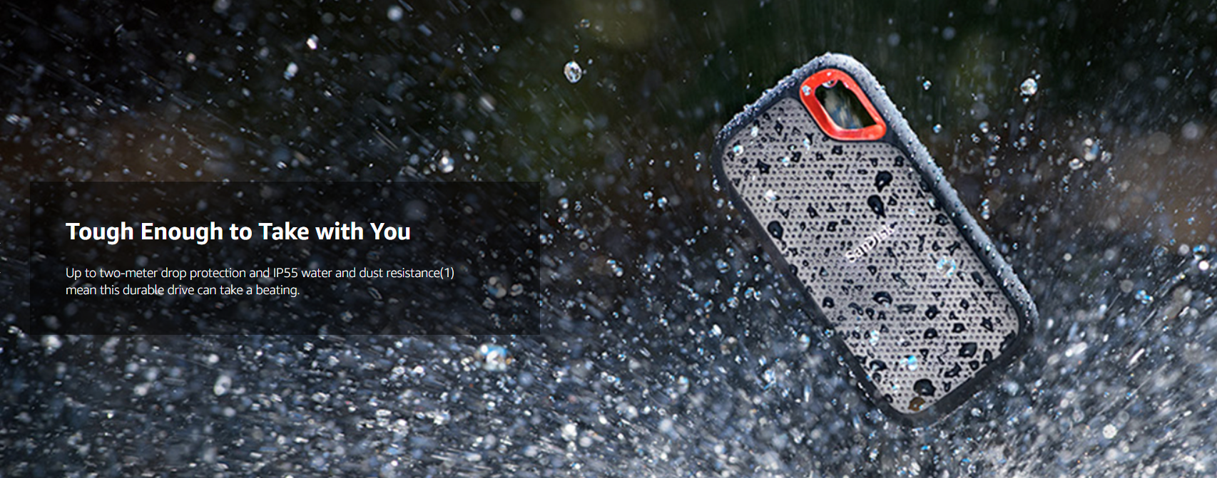 • Up to two-meter drop protection and IP55 water and dust resistance mean this tough drive can take a beating
