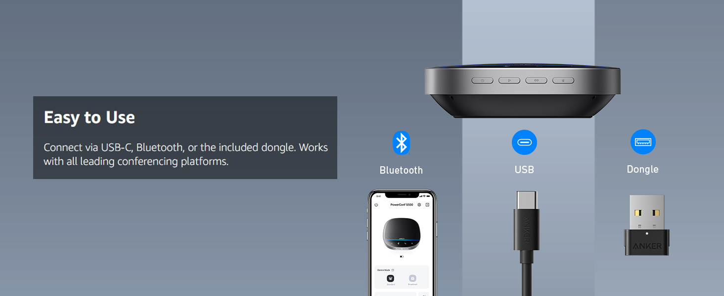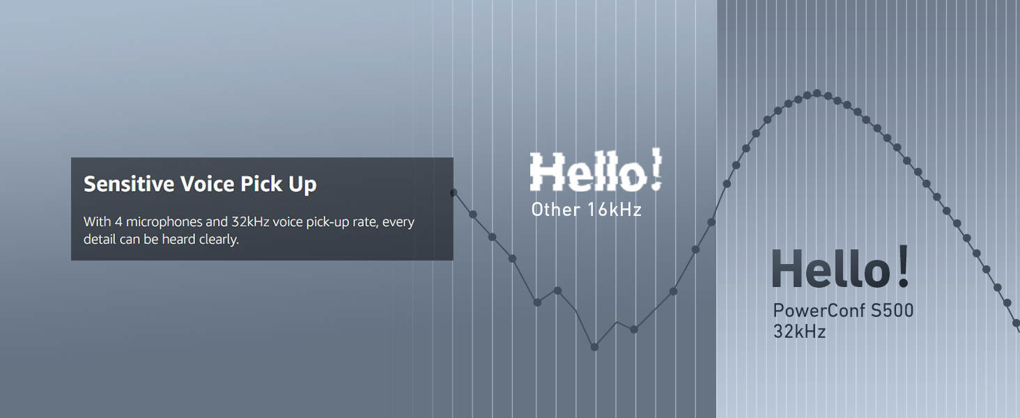• VoiceRadar Technology: PowerConf S500 speakerphone automatically focuses on voice sources in the room while eliminating unwanted noise. Speech is delivered without any of the echos and distractions of a hectic meeting room.