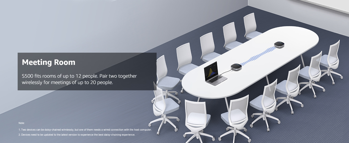 • Double Your Coverage: A single PowerConf S500 delivers performance for rooms of up to 12 people, and you can wirelessly pair two of them to increase coverage for up to 20 people.
