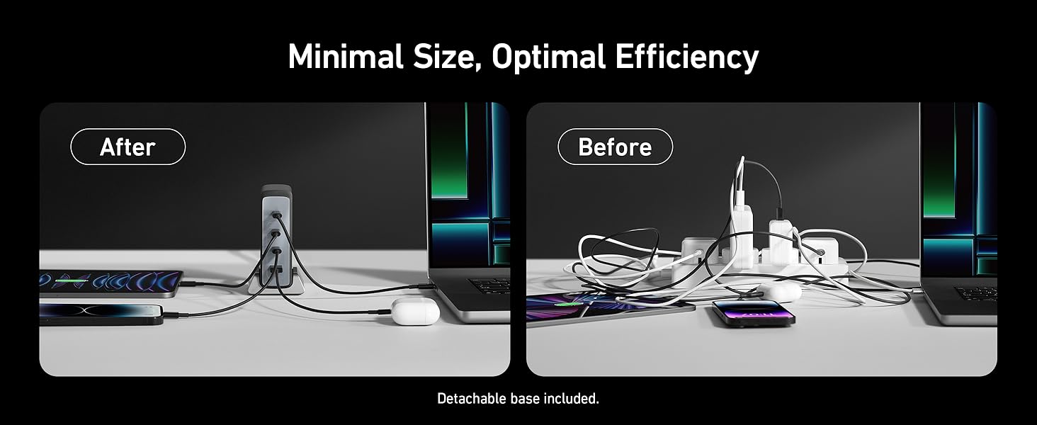 - Keep It Neat and Powerful: The charger's compact design with a detachable charging base ensures a clutter-free workspace while delivering efficient charging.