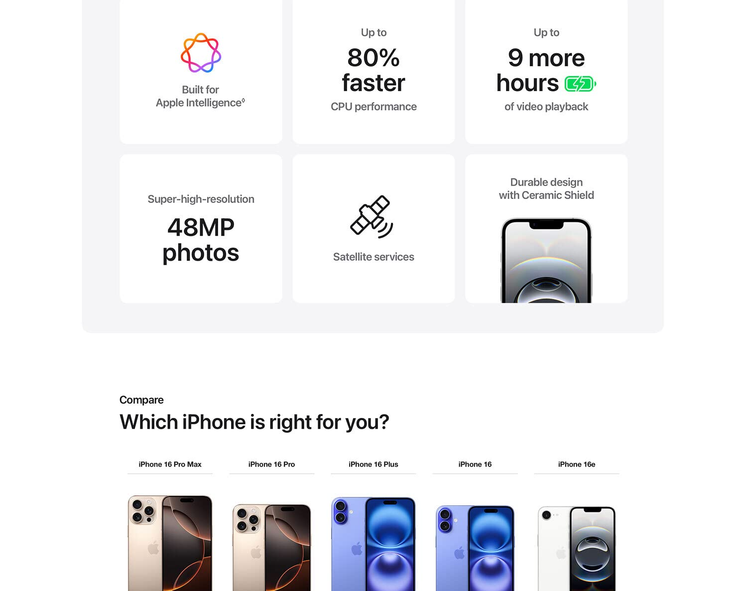 • A18 CHIP. FAST INTO THE FUTURE — A18 chip powers Apple Intelligence, gaming, and regular iOS updates to keep your iPhone feeling new for years to come.
