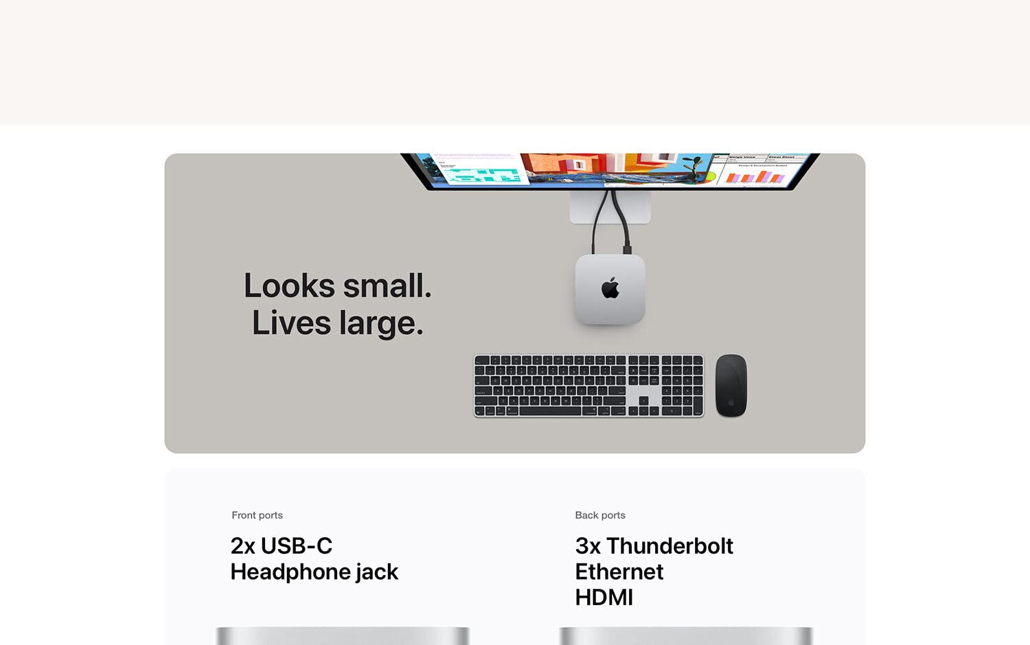 • LOOKS SMALL. LIVES LARGE — At just five by five inches, Mac mini is designed to fit perfectly next to a monitor and is easy to place just about anywhere.