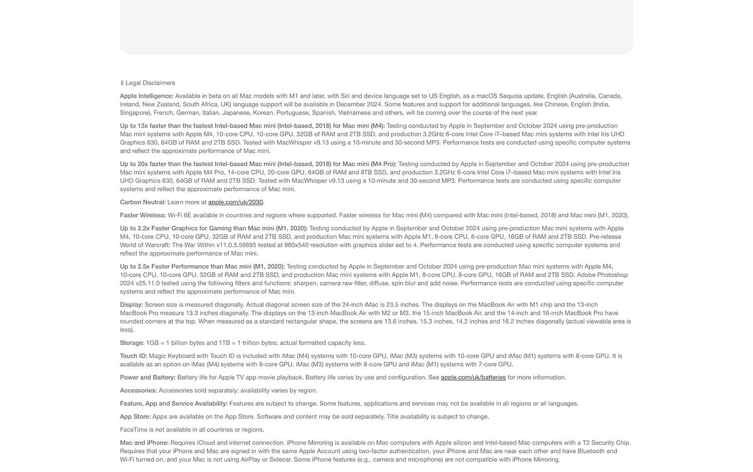• CARBON NEUTRAL — Mac mini is carbon neutral. Learn more about Apple’s commitment to the environment at apple.com/uk/2030.