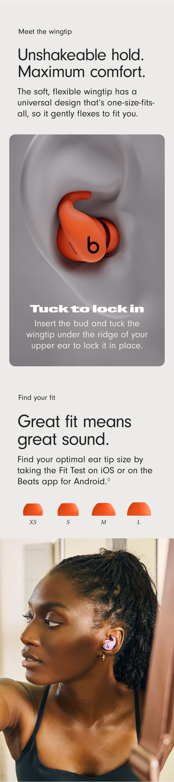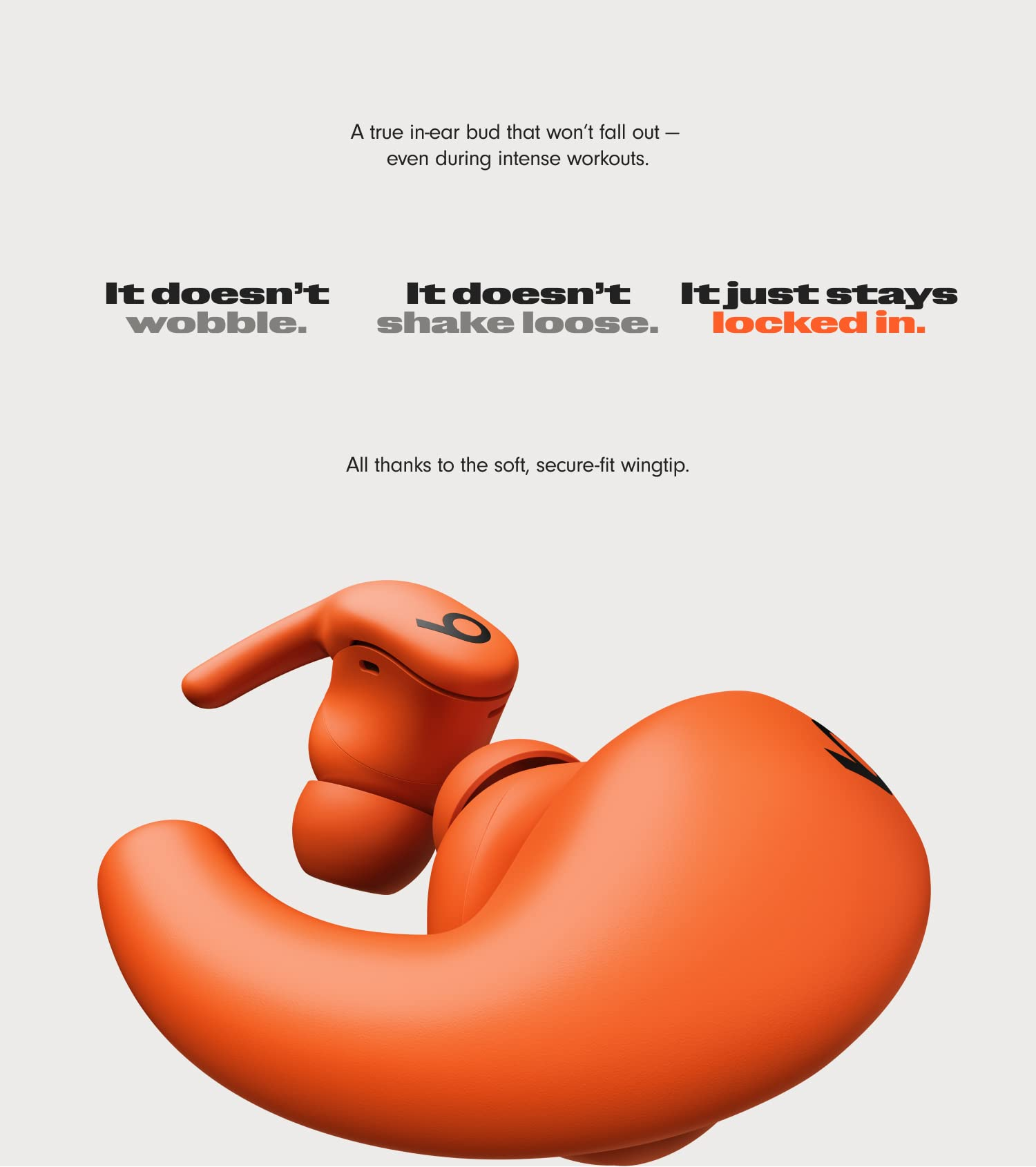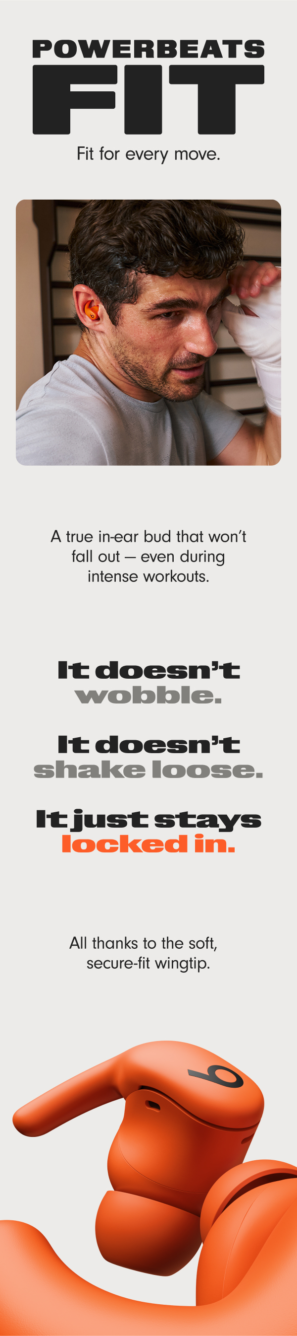 • High-performance earbuds for working out, with universal secure-fit wingtips that gently tuck in your ear for exceptional stability and all-day comfort. The custom acoustic platform delivers powerful, balanced Beats sound across the full audio spectrum.