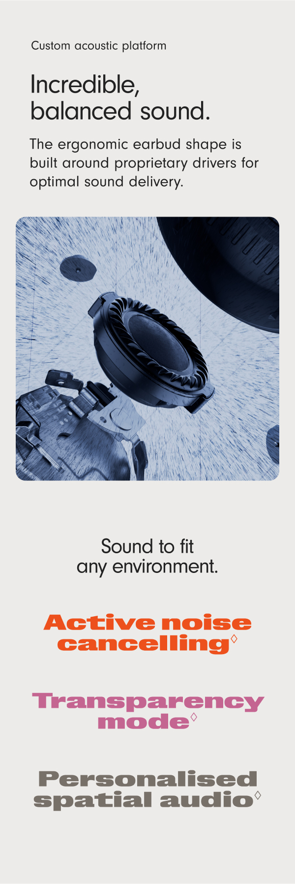 • Supports Personalized Spatial Audio with dynamic head tracking. Adaptive EQ tailors your sound to each earbud’s personal fit and seal, adjusting audio to you.