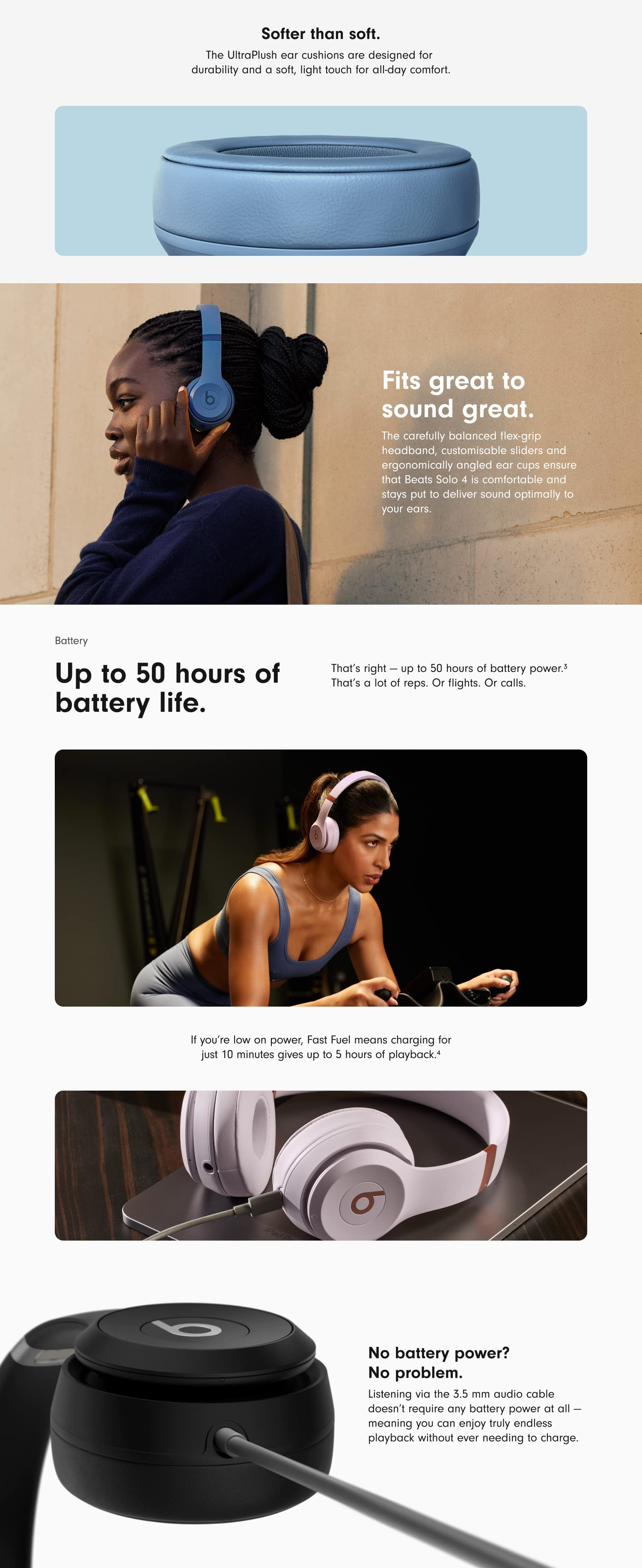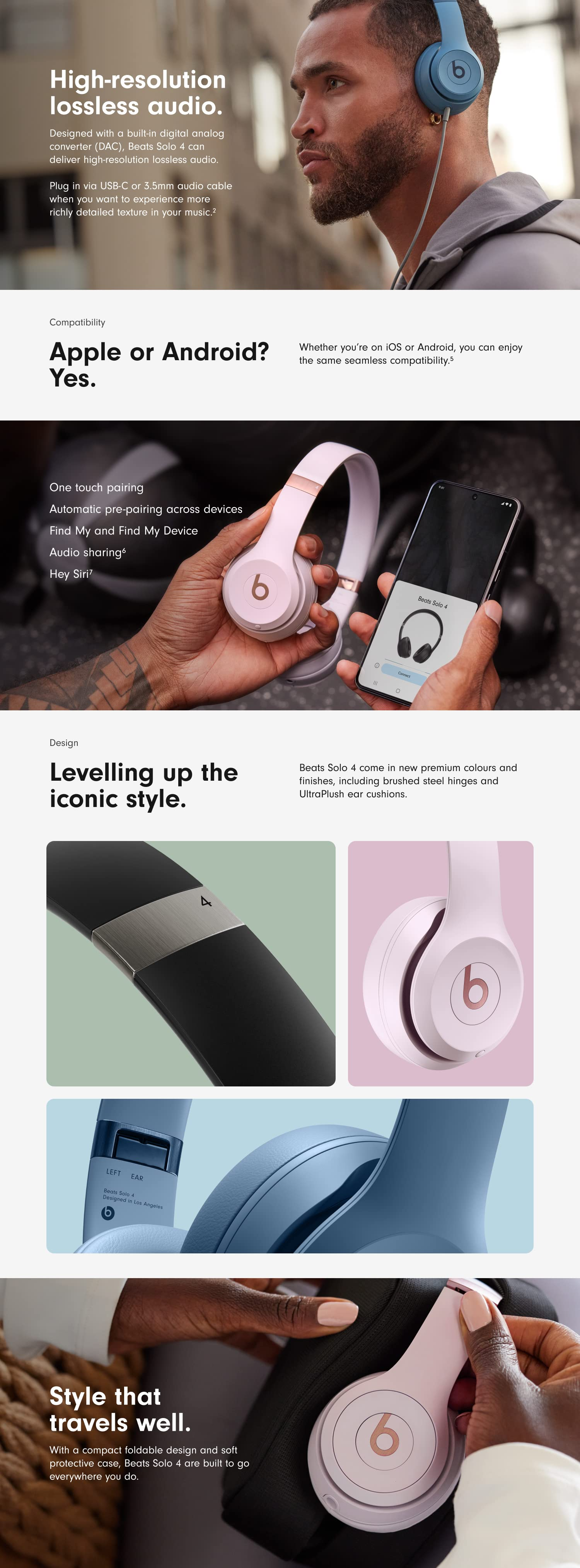 Beats Solo 4 Wireless Bluetooth On-Ear Headphones - Cloud Pink Beats Solo 4 Wireless Bluetooth On-Ear Headphones - Matt Black Beats Solo 4 Wireless Bluetooth On-Ear Headphones - Slate Blue Beats Solo 4 Wireless Bluetooth On-Ear Headphones - Black and Gold
