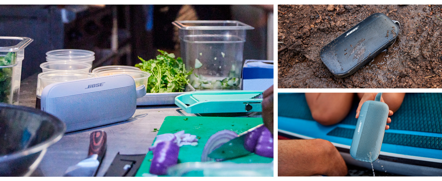 • Waterproof wireless speaker for travel—SoundLink Flex is rigorously tested to meet IP67 waterproof speaker standards. Crafted and sealed with waterproof materials, it even floats—ideal for outdoor adventures