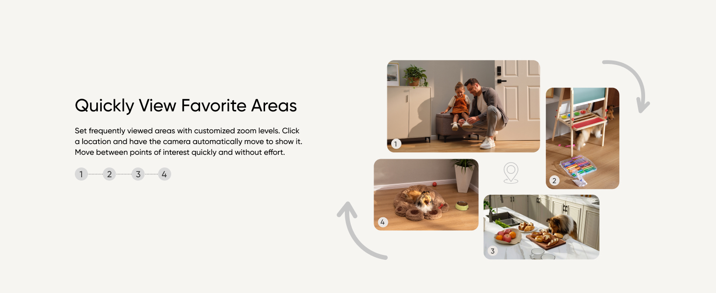• Complete Coverage: The 360° pan and tilt capabilities ensure a complete view of your space without blind spots. This makes it an excellent dog camera or cat camera.