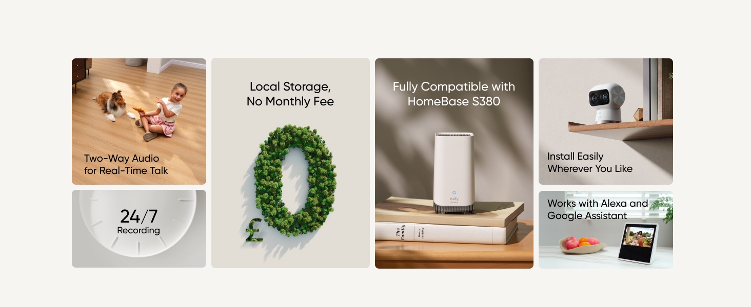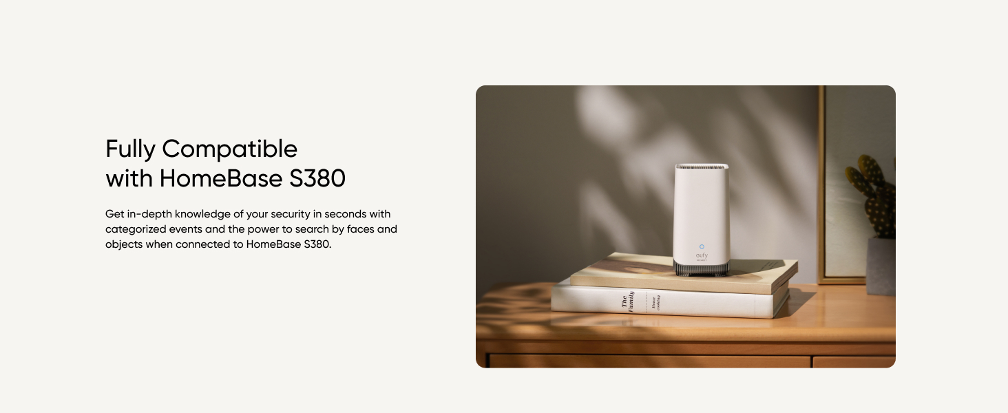 • Intelligent Tracking: Powered by eufy Security's self-developed algorithm, the AI-powered tracking enable the camera to follow family members or pets around the room.Note: 1. Indoor Cam S350 is fully compatible with HomeBase 3 running firmware version 3.3.2.6 or later. It is not compatible HomeBase 2. 2. It is not supported RTSP for NAS storage now, but will be supported in future software updates. 3. HomeKit is not supported.