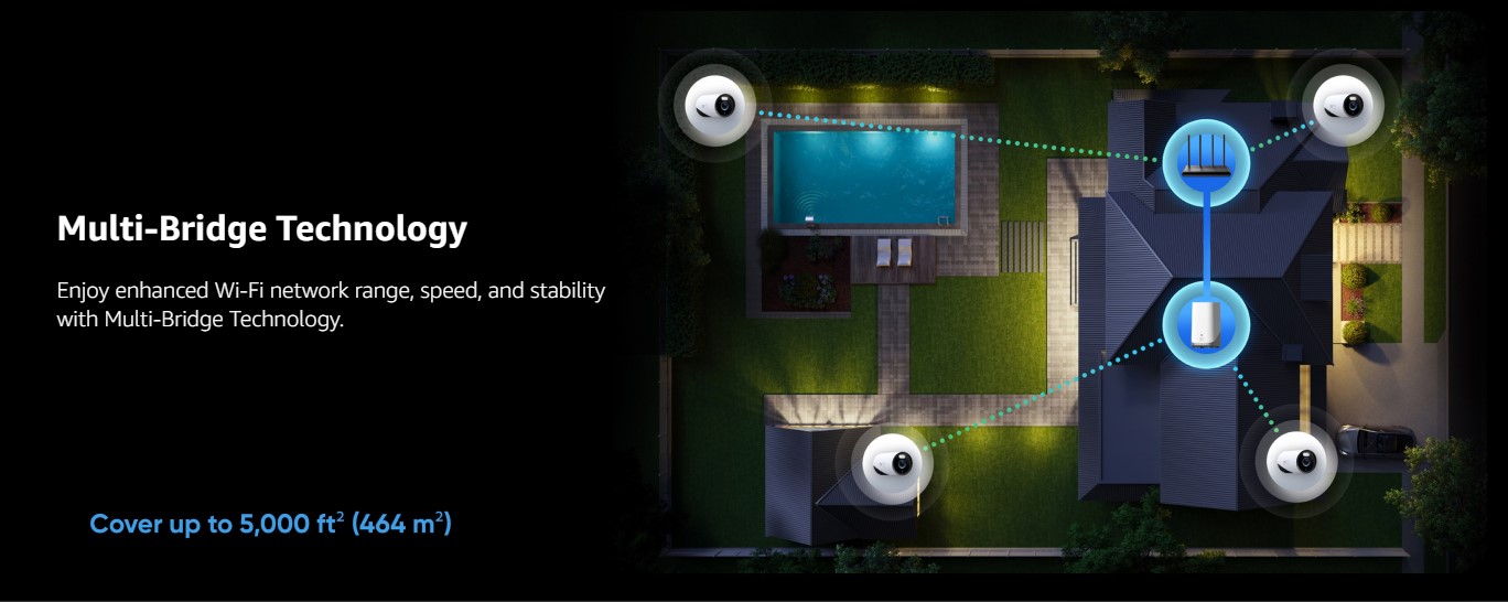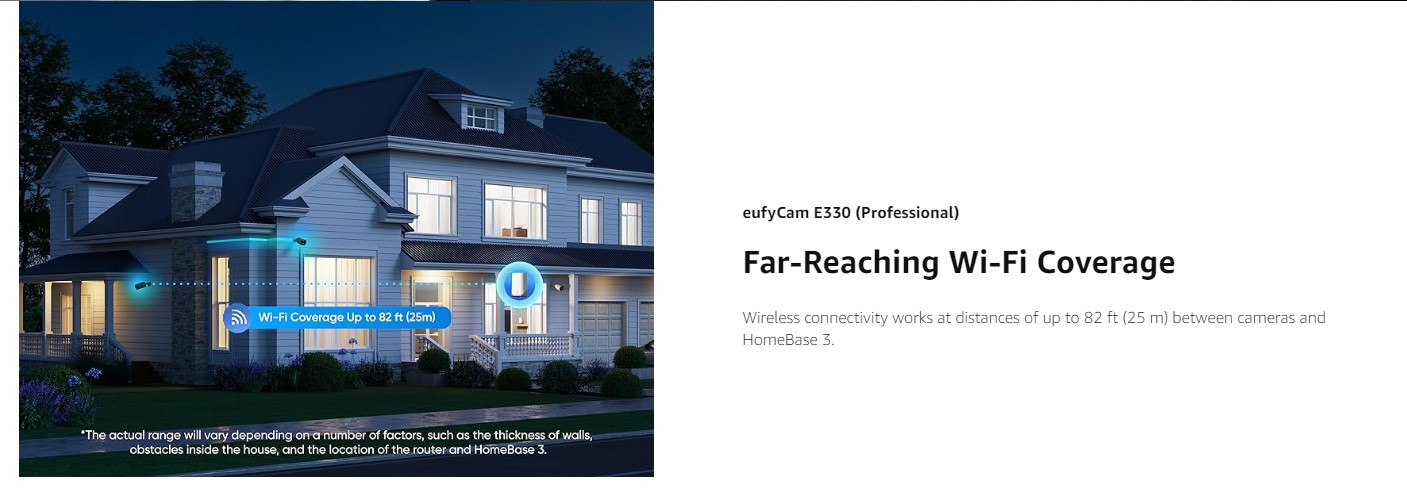 • Stable Wi-Fi and Easy DIY Installation: Stable Wi-Fi coverage that reaches every corner of your home (up to 5,000 ft² / 464 m²), avoiding security blind spots caused by Wi-Fi dropouts or insufficient Wi-Fi coverage. Wireless connectivity works at distances up to 82 ft (25 m) between cameras and HomeBase 3, allowing easy DIY installation anywhere power is available.