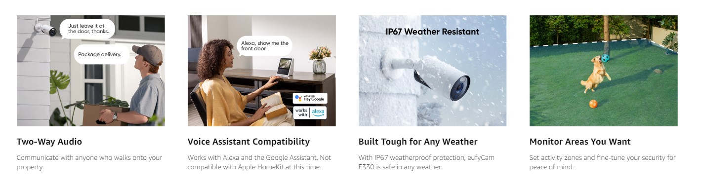 • Save Months of 24/7 Security Footage: With eufyCam E330, your data is protected with advanced encryption and you're always in control. Install an additional 2.5 in storage drive (not included) and expand your storage up to 16 TB, all for no monthly fee.
