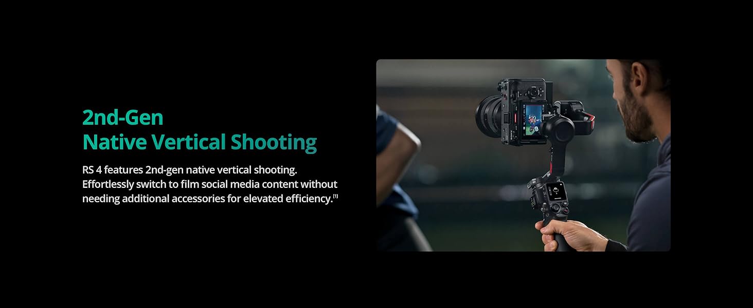 • 2nd-Gen Native Vertical Shooting - DJI RS 4 features a new horizontal plate for efficient content creation; simply release it and secure it into the vertical position for an easy switch to vertical shooting without additional accessories.