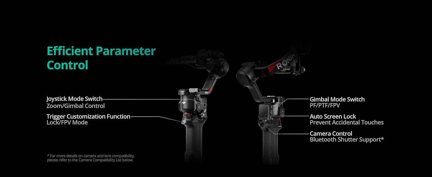 • Joystick Mode Switch for Zoom/Gimbal Control - Quickly switch between PF, PTF, and FPV modes by toggling the gimbal mode switch. Set FPV mode to 3D Roll 360 mode or Custom mode according to the shooting requirements, ensuring RS 4 is precision-ready.