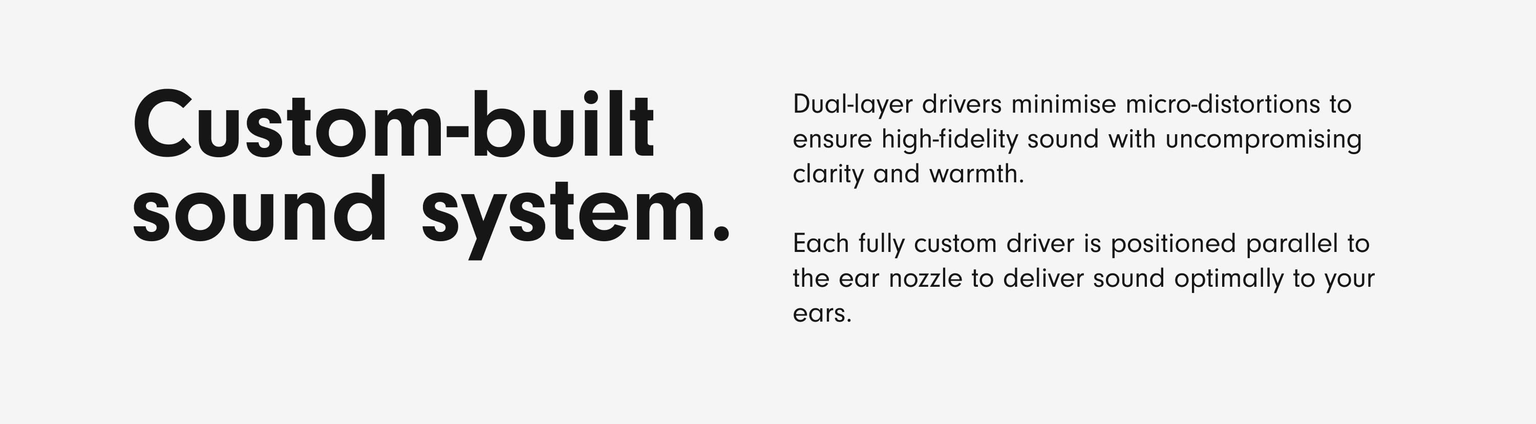 • Dual-layer drivers minimize distortion, ensuring high-fidelity sound.