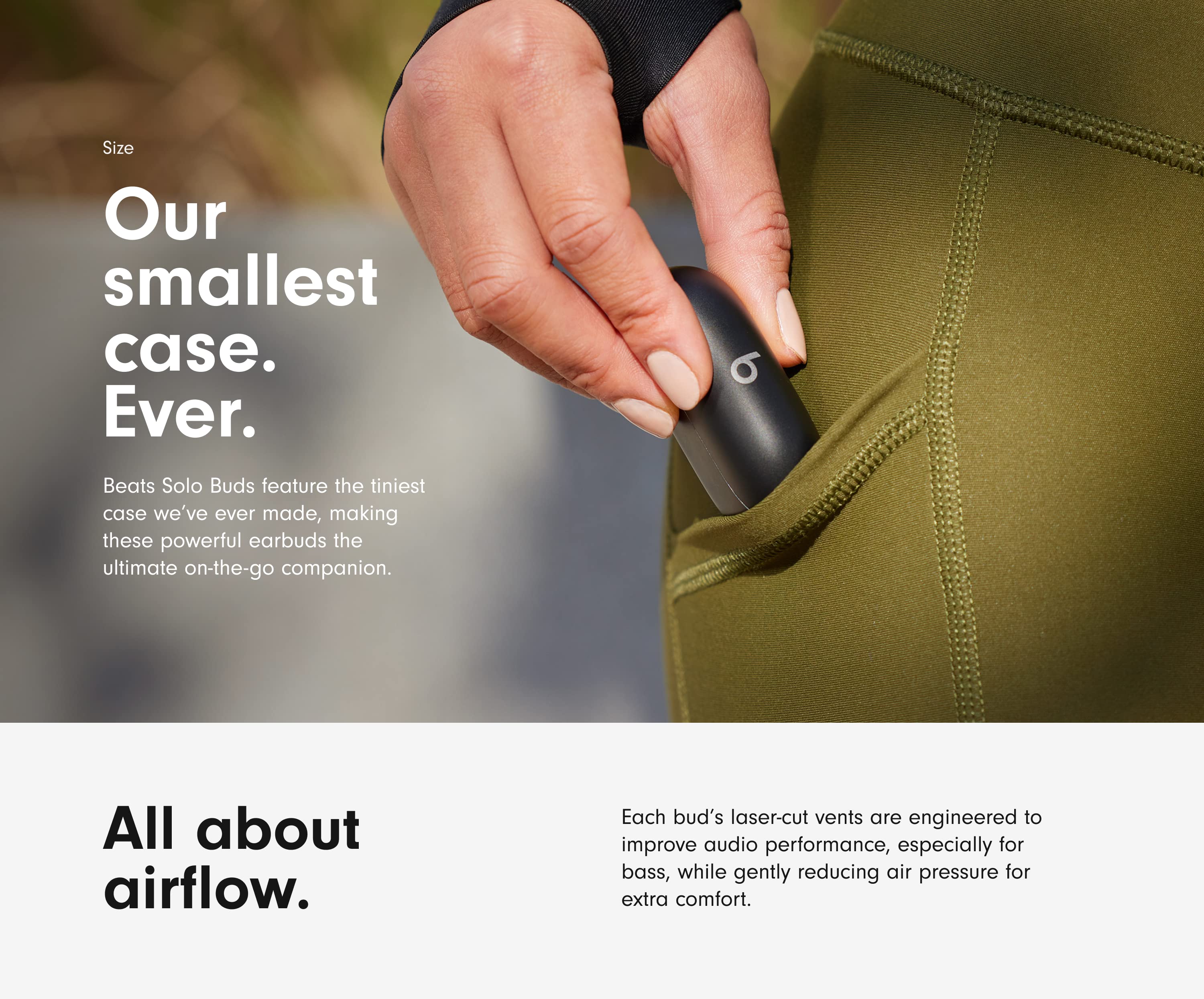 • The smallest case we’ve ever made, making these powerful earbuds the perfect on-the-go companion.