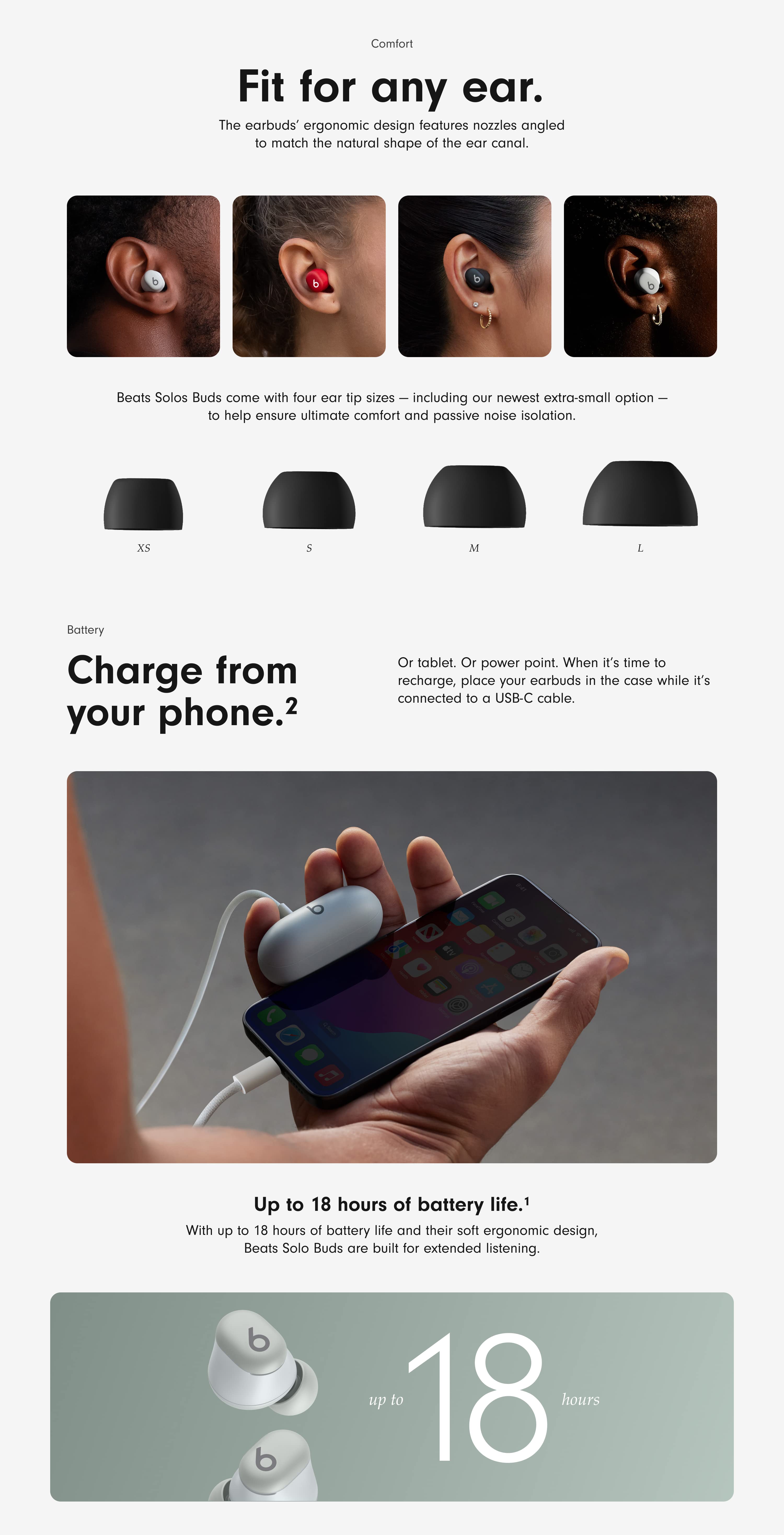 Beats Solo Buds (True Wireless Earbuds)  - Matt Black Beats Solo Buds (True Wireless Earbuds) - Storm Grey Beats Solo Buds (True Wireless Earbuds) - Arctic Purple Beats Solo Buds (True Wireless Earbuds) - Transparent Red