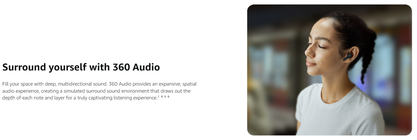• BALANCED SOUND & 360 AUDIO: Level up your listening with dynamic and Balanced sound; Experience fuller bass and balanced detail that add depth to each note, while 360 Audio provides an expansive, spatial audio experience