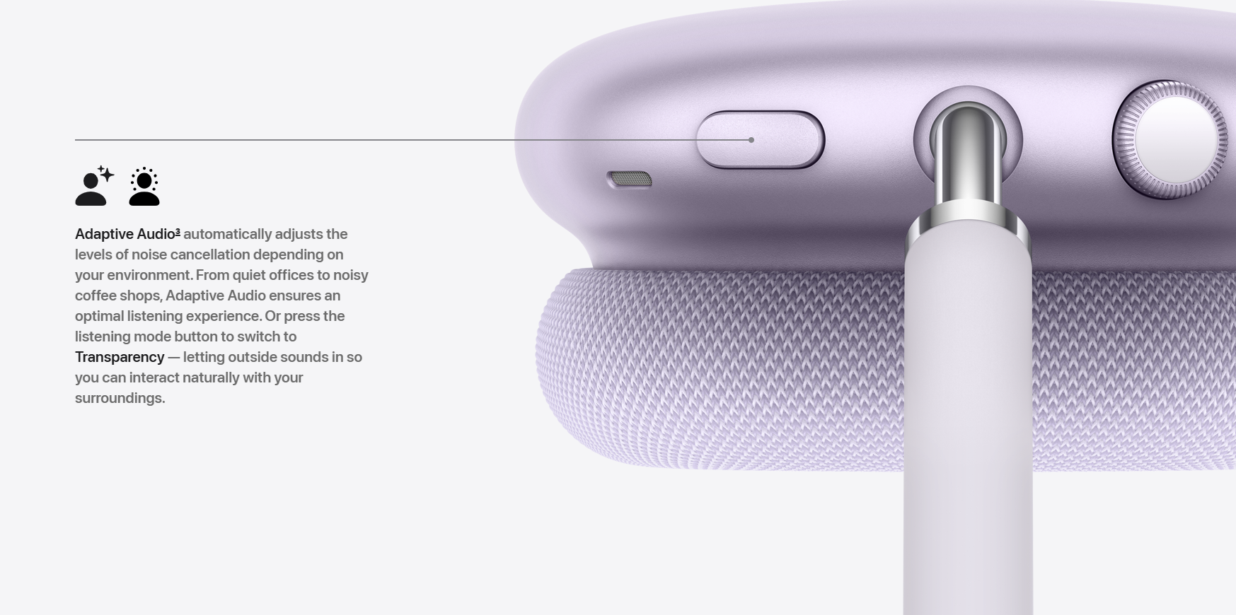 • HEAR THE WORLD AROUND YOU — Transparency mode and Adaptive Audio let you comfortably hear and interact with your surroundings.