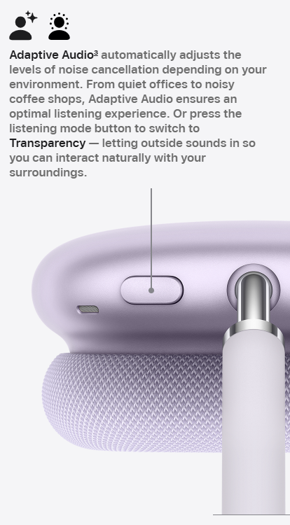 • ULTIMATE OVER-EAR LISTENING EXPERIENCE — Apple-designed dynamic driver and H2 chip deliver high-fidelity audio with deep bass, expansive mids and crisp highs.