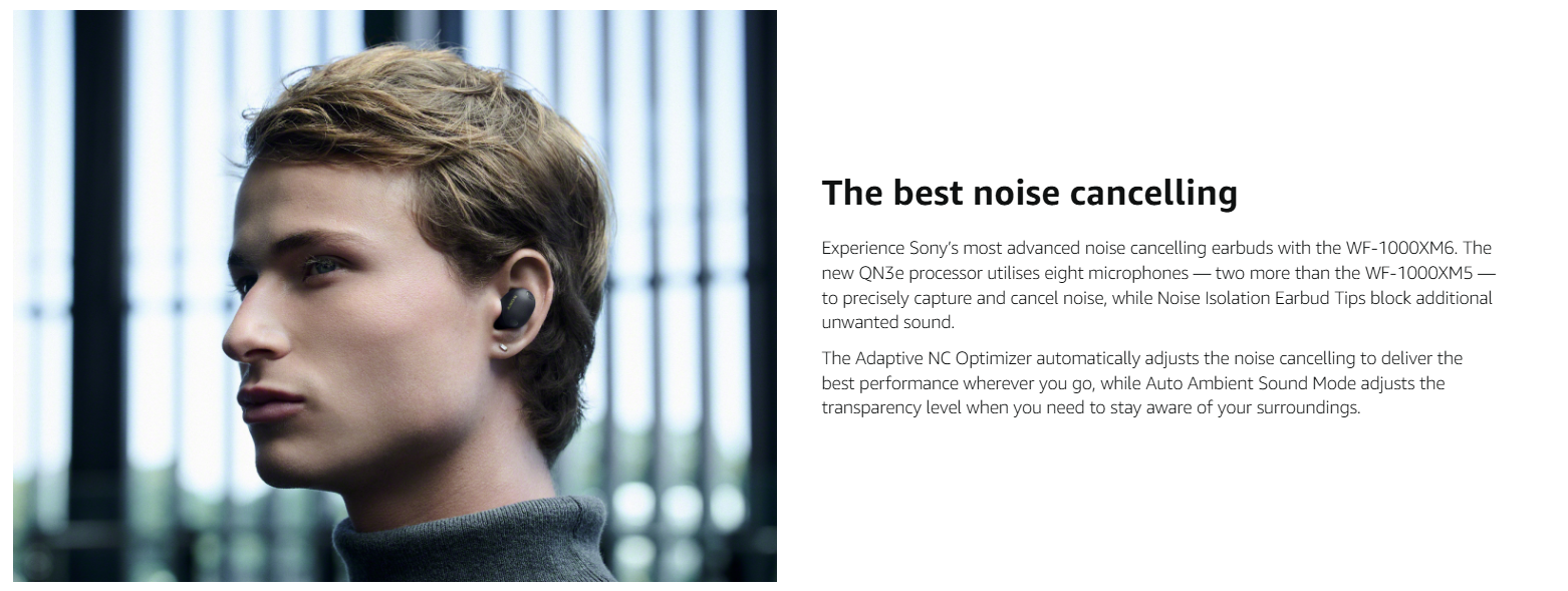 • INTRODUCING SONY WF-1000XM6 WIRELESS NOISE CANCELLING EARBUDS: Experience Sony’s most advanced noise cancelling earbuds – perfect for travel, entertainment, business, and more
