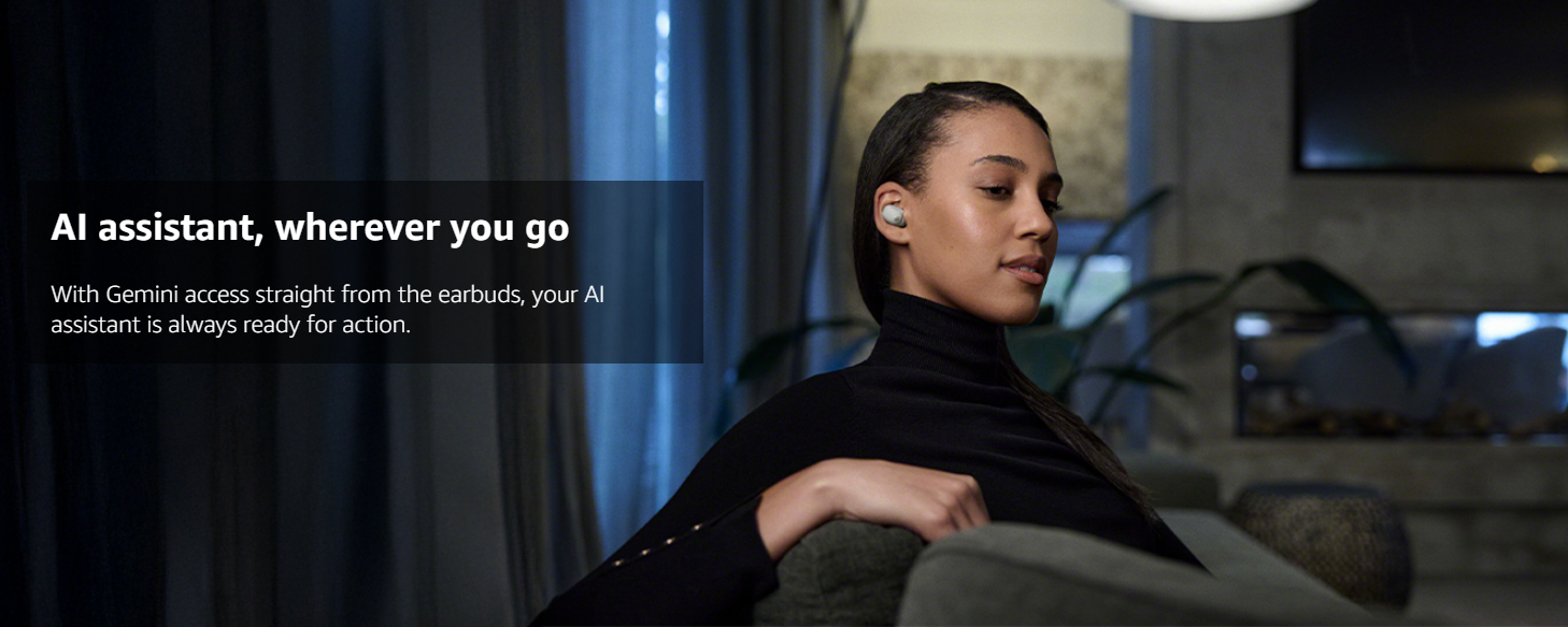 • AI ASSISTANT, WHEREVER YOU GO: Just say the wake word or tap on the ear buds to check your calendar, send messages, find quick answers, control your music, and more, instantly
