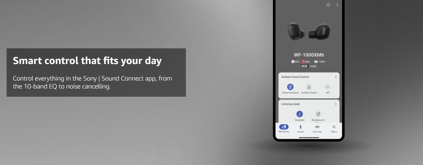 • SMART CONTROL THAT FITS YOUR DAY: Control these wireless earbuds with simple tap controls, optional voice commands, or directly through the Sony | Sound Connect app on Android and iOS