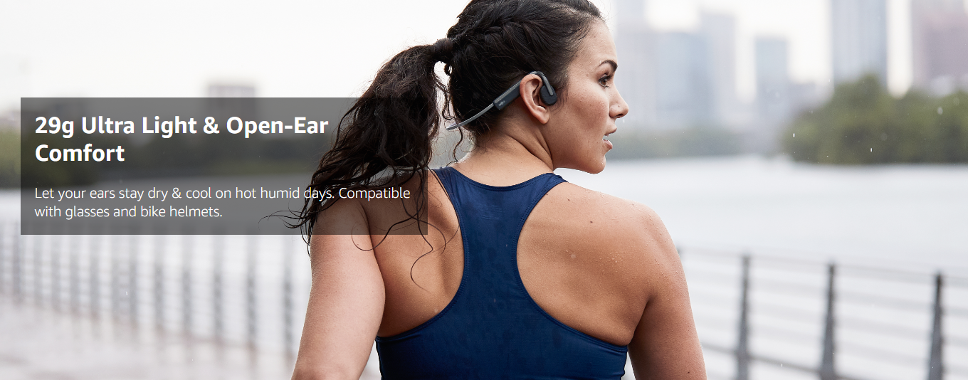 - Open-Ear Design for Comfort: Unlike regular wireless earphones, bone conduction headphones sit comfortably in front of your ears, leaving them open and free. Weighing only 29 grams, they're lightweight and barely noticeable, letting you enjoy balanced audio while moving effortlessly.