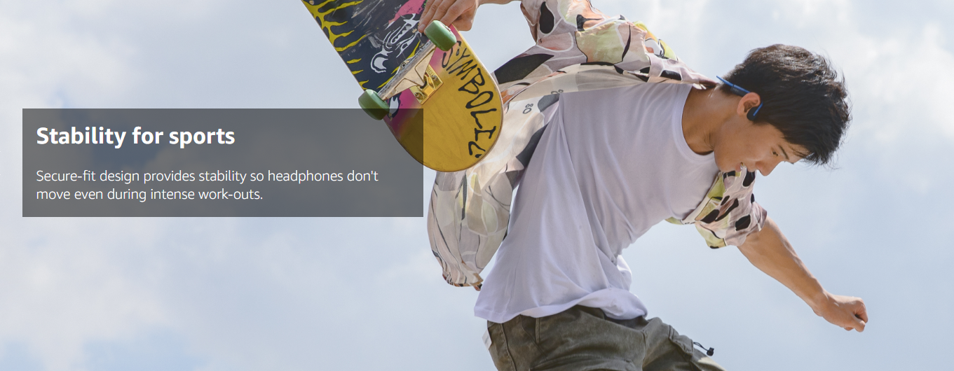 - Secure Fit & Safety: With their open-ear design, OpenMove offer a secure way to enjoy music or podcasts while running, cycling, sprinting, or hiking, without blocking your awareness of the surroundings.