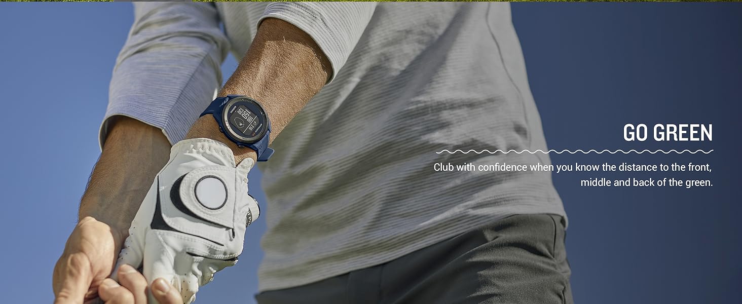 • Keep score right on the watch and upload directly to the Garmin Golf app to participate in weekly leaderboards