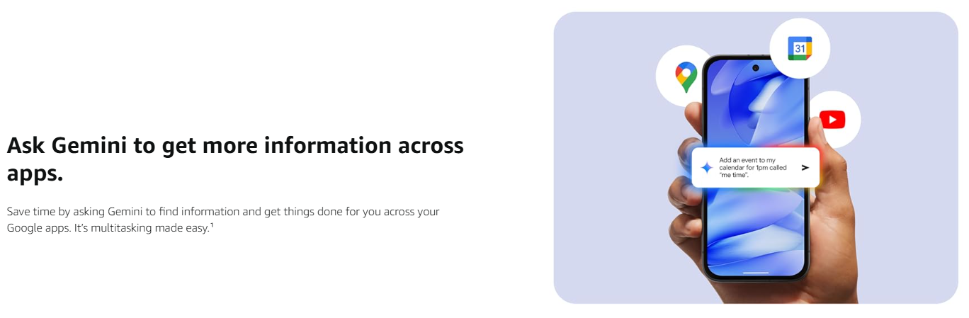 • Ask Gemini to get more information across apps. Save time by asking Gemini to find information and get things done for you across your Google apps. It’s multitasking made easy.