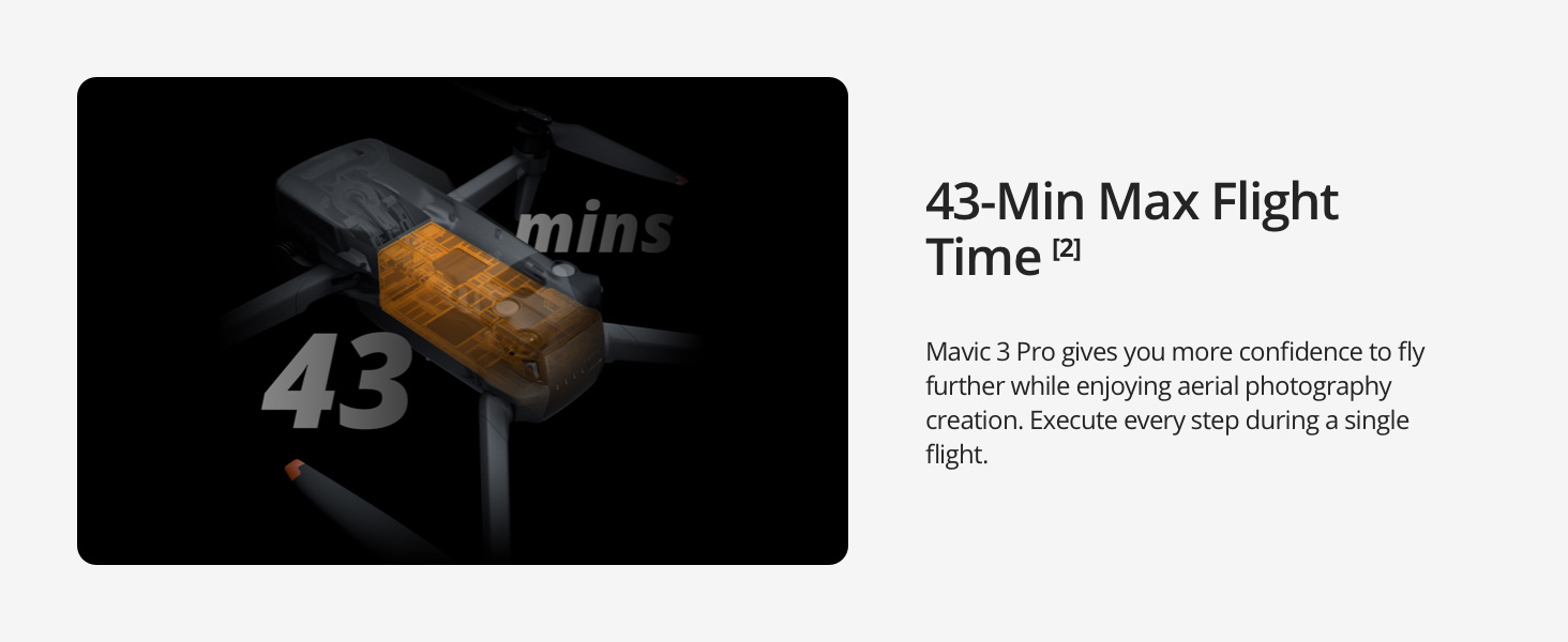 - 43-minute max flight time - Mavic 3 Pro gives you more confidence to fly further and spend less time worrying about the battery level of the long-range drone with camera for adults.