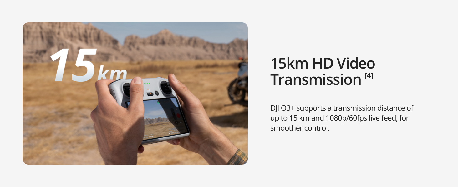 - DJI O3+ - Mavic 3 Pro features a transmission distance of up to 15 km with stable signals, presenting a more coherent camera view A professional 4K camera long-range drone for adults.