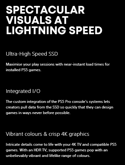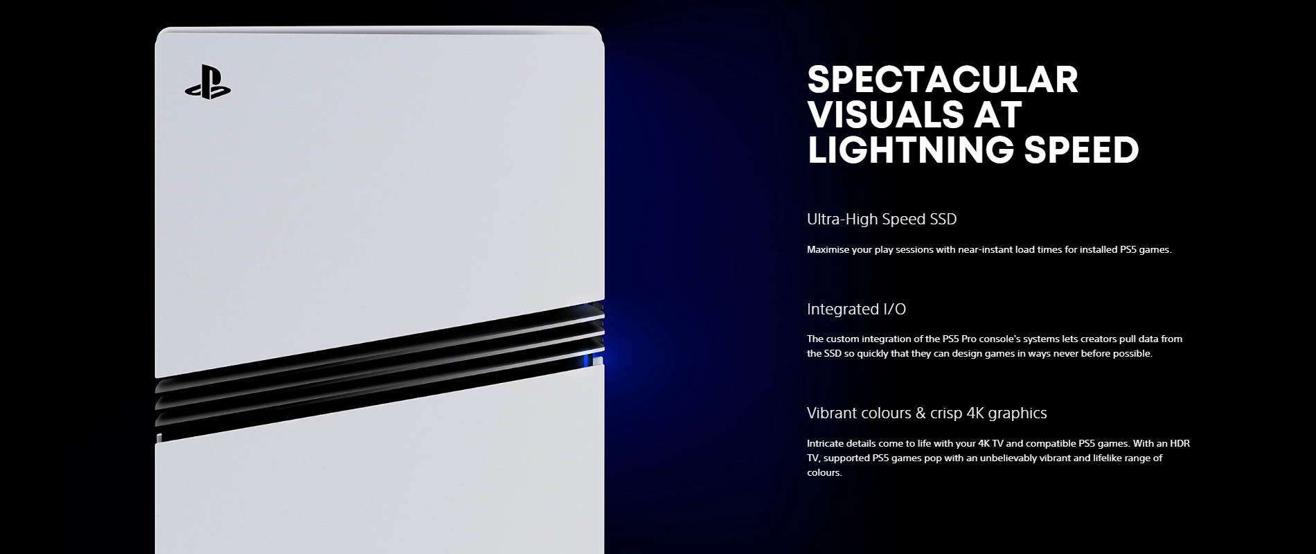 • PlayStation Spectral Super Resolution (PSSR) Get super sharp image clarity on your 4K TV using AI enhanced resolution for ultra-high definition play with astonishing detail.