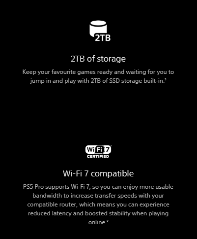 • 2TB of Storage Keep your favourite games ready and waiting for you to jump in and play with 2TB of SSD storage built in.