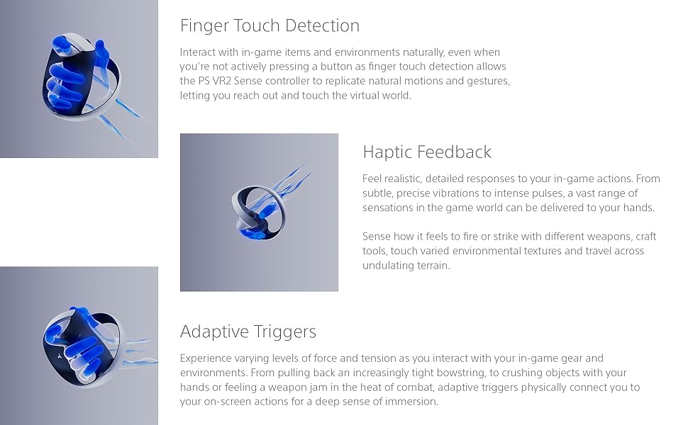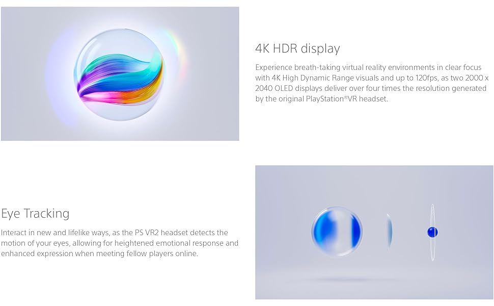 • HEIGHTENED SENSORY AND EMOTIONAL EXPERIENCES: Experience revolutionary PlayStation VR2 Sense technology with eye tracking, headset feedback and 3D Audio, which combines with the new intuitive controllers to create deeply realistic sensations and emotions in compatible games