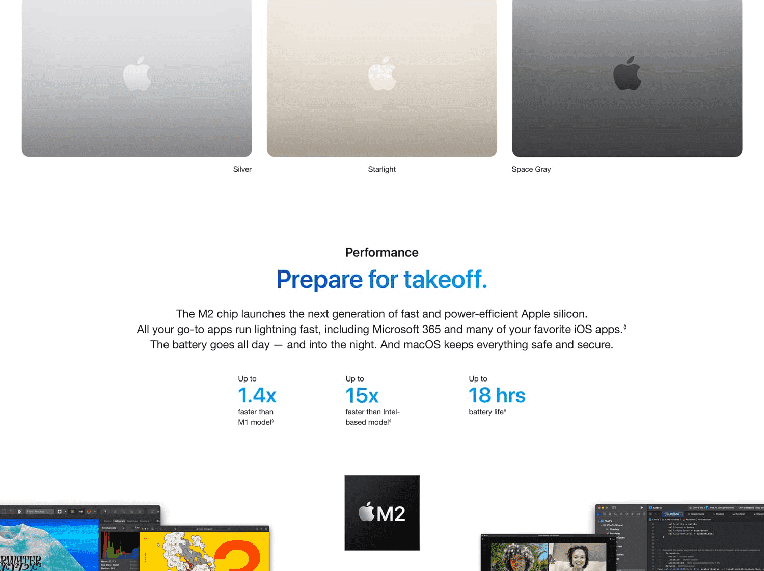 • UP TO 18 HOURS OF BATTERY LIFE — Go all day and into the night, thanks to the power-efficient performance of the Apple M2 chip.