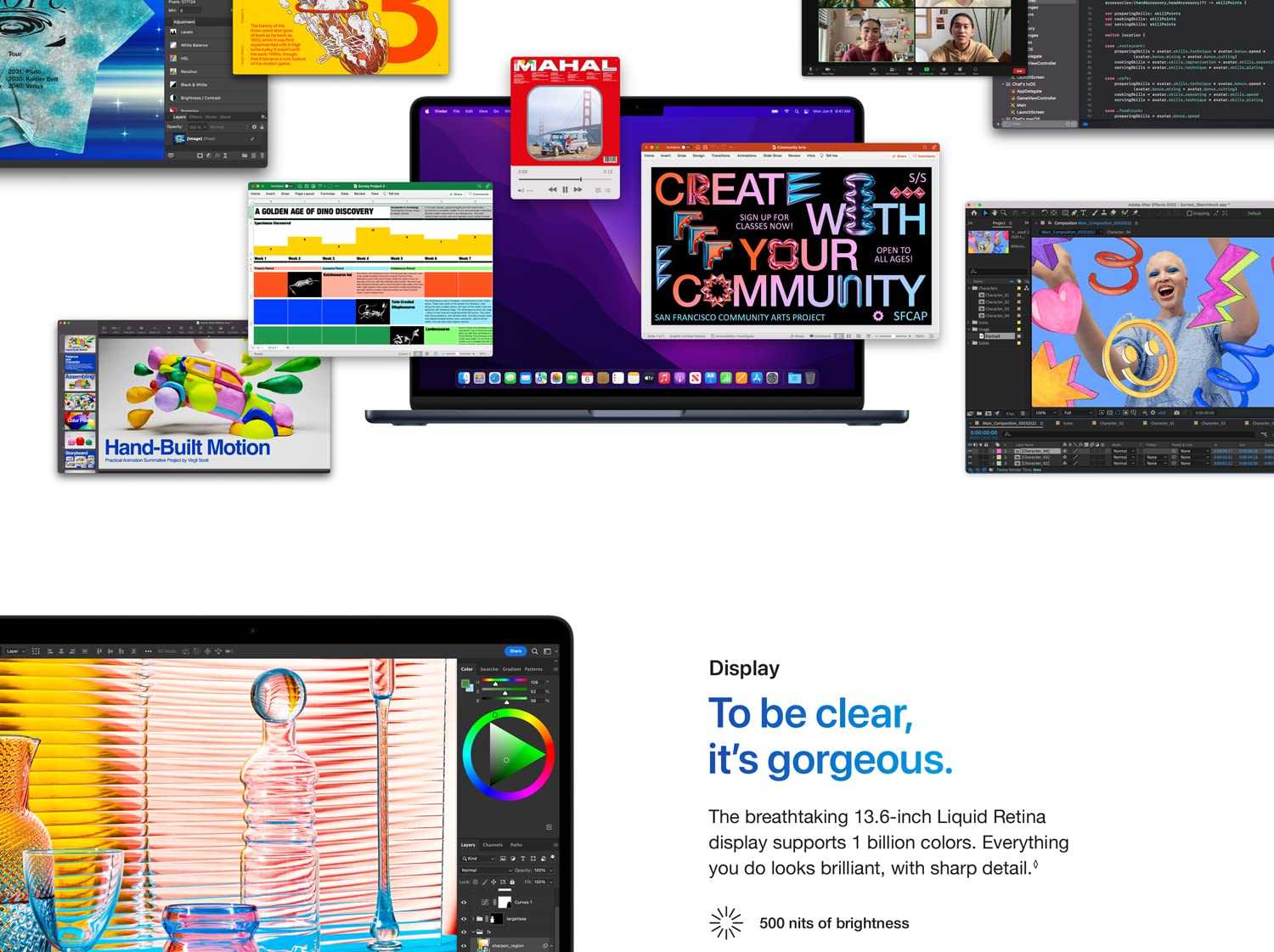 • BIG, BEAUTIFUL DISPLAY — The 13.6-inch Liquid Retina display features over 500 nits of brightness, P3 wide colour and support for 1 billion colours for vibrant images and incredible detail.