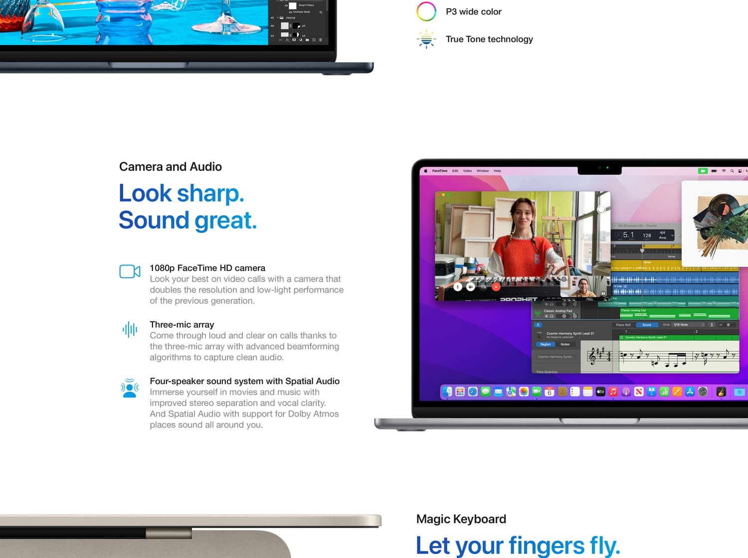 • ADVANCED CAMERA AND AUDIO — Look sharp and sound great with a 1080p FaceTime HD camera, three-mic array and four-speaker sound system with Spatial Audio.