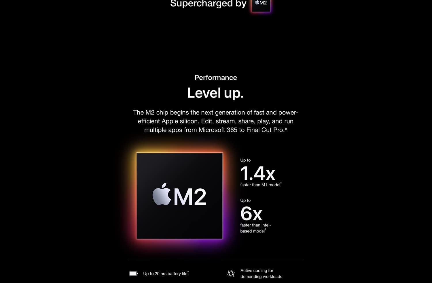 • UP TO 20 HOURS OF BATTERY LIFE — Go all day and into the night, thanks to the power-efficient performance of the Apple M2 chip.