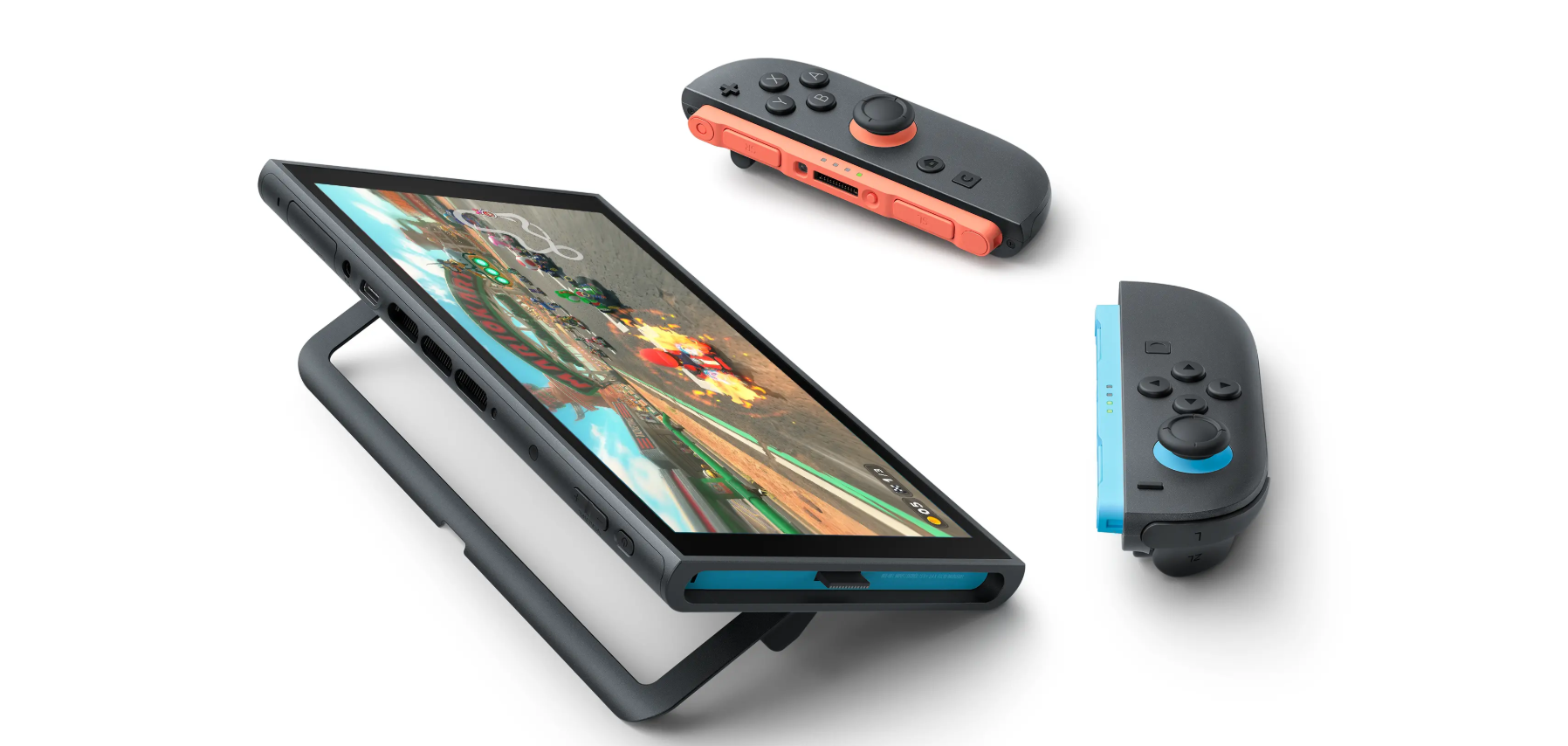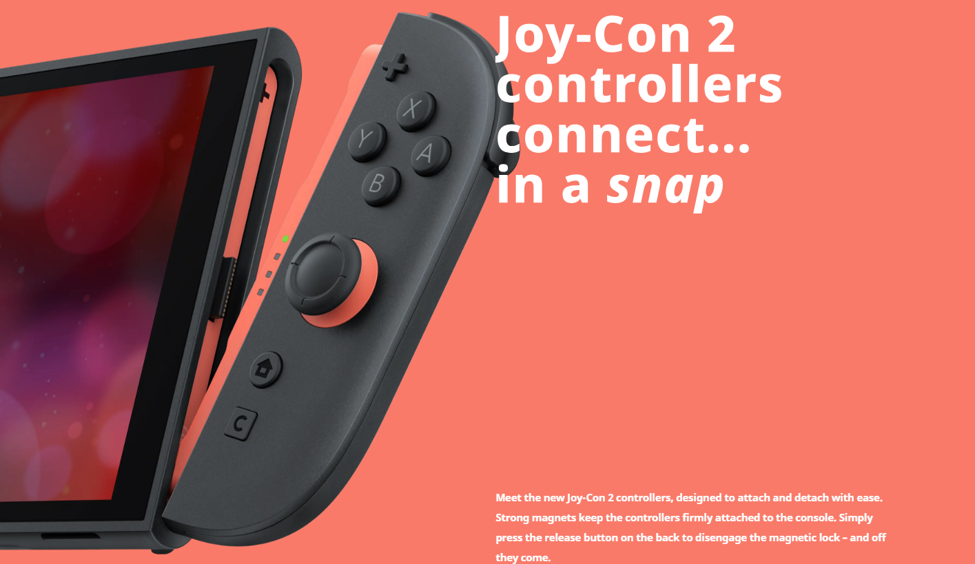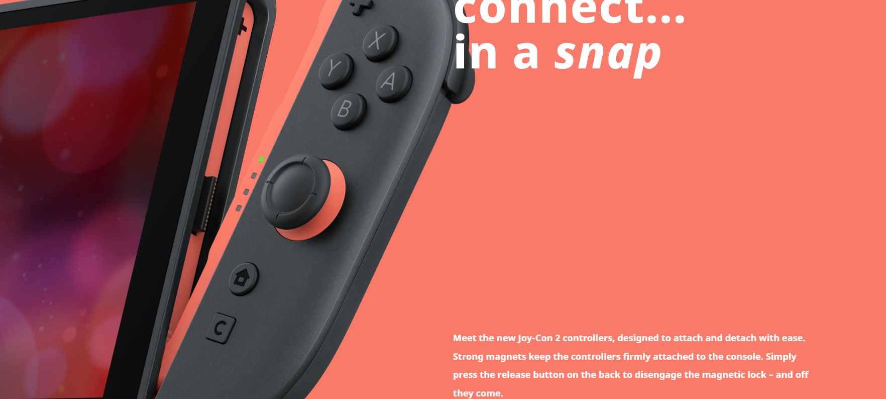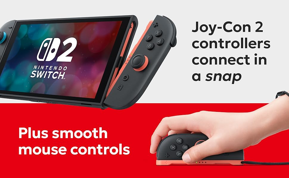 • Snap the new Joy-Con 2 controllers into place with magnetic connectors. Each controller can even be used as a mouse in compatible games. Say "hello" to GameChat*** - Start a chat with friends at any time using the C Button!