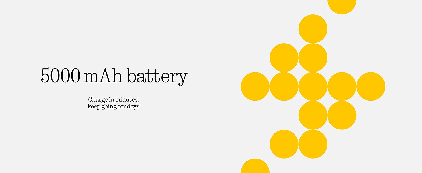 • 5000 mAh BATTERY: Charge in minutes, keep going for days- 26 hours of YouTube. 11 hours of PUBG gaming, 24 hours of Instagram scrolling, 45 hours of voice calls. Maintain over 90% maximum capacity after 1,200 charging cycles. 50W FAST CHARGE: A day's power in under 20 mins.