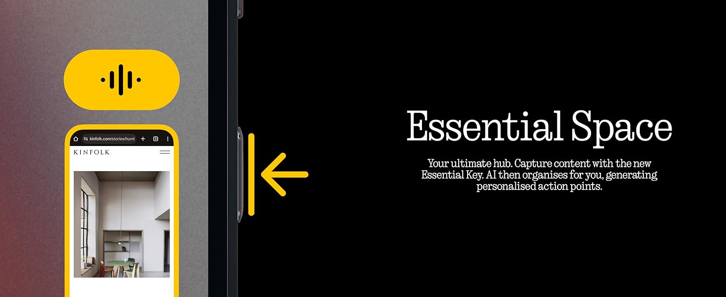 • ESSENTIAL KEY: A new button on the side of your device. Press once to capture the content on your screen. Or long-press to record your voice, ideas and inspirations on the go. ESSENTIAL SPACE: Everything in one place. It removes the friction from recalling content. AI organizes your captures and generates personalized suggestions and actions to help you stay on top of things.