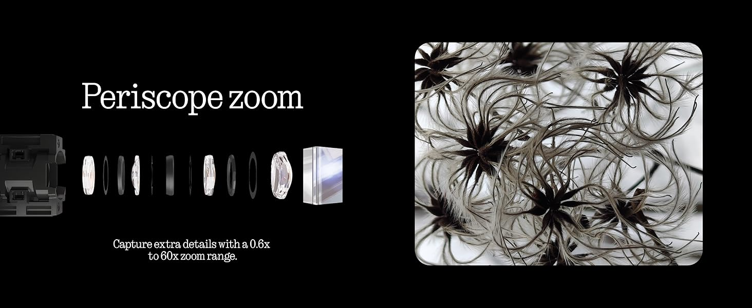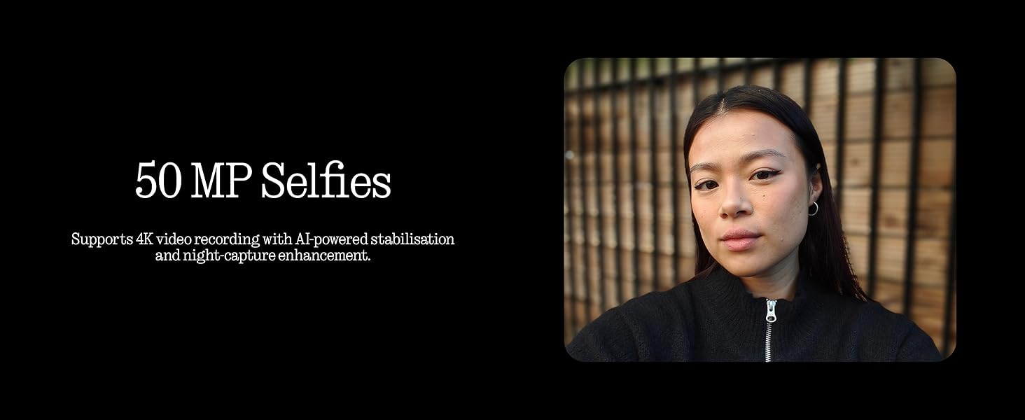 • CAMERA: Embody a pro photographer in any environment, featuring a versatile camera that beautifully highlights every light and shadow, capturing intricate details with a 0.6x to 60x zoom range and advanced macro functionality. It combines a +41% larger 50 MP OIS Sony sensor with an upgraded periscope zoom, offering a 70 mm portrait-perfect focal length. FRONT CAMERA: 50 MP selfies, Supports 4K video recording with AI-powered stabilisation and night capture enhancement.