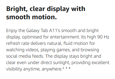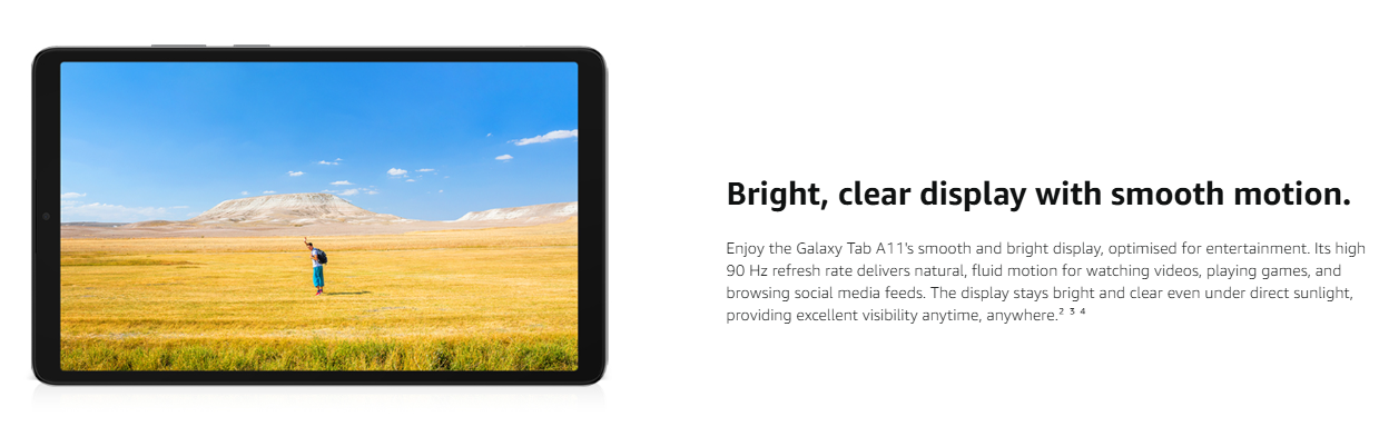 • OPTIMISED FOR ENTERTAINMENT: Enjoy the Galaxy Tab A11's bright, clear display, even under direct sunlight, and smooth motion thanks to the high 90 Hz refresh rate. Experience natural, fluid motion that enhances videos, games, and social media feeds.