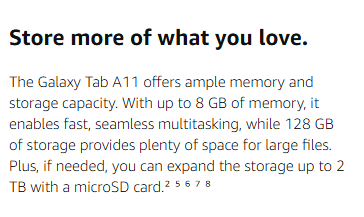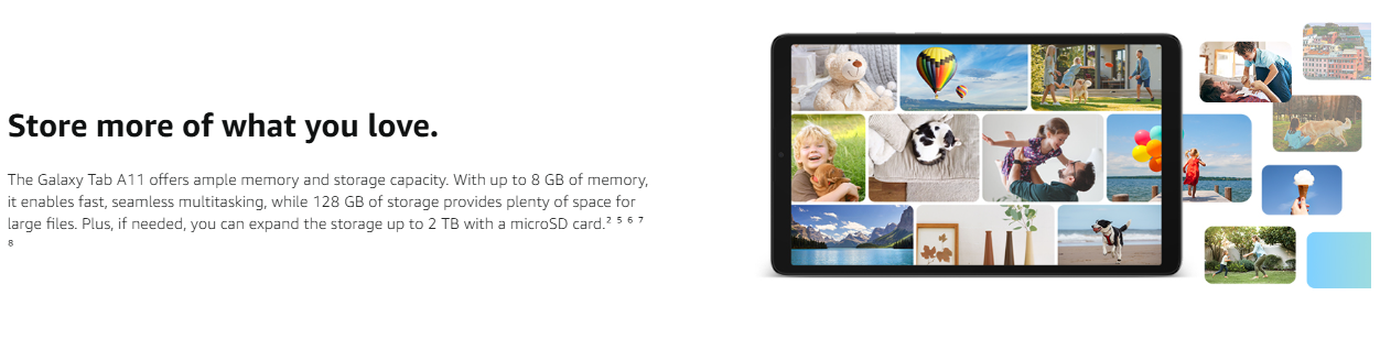 • MORE ROOM FOR WHAT YOU LOVE: Store and organise your items with up to 8GB of memory for fast and seamless multitasking. With up to 128GB storage, you'll have plenty of space for large files. Not enough? Expand it up to 2TB with a microSD card.